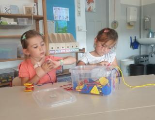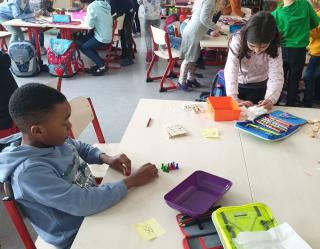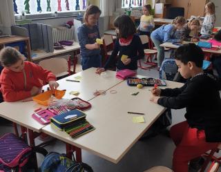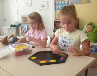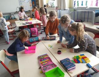 Nachdem wir uns und die Schule mit ihren vielen Räumen und Personen etwas kennen gelernt haben, schauen wir uns genauer in unserem Klassenraum um. Hier gibt es viel Material zum Zählen und Bündeln, aber auch abwechslungsreiche Spiele, um die Wahrnehmung und Feinmotorik zu trainieren. Besonders gern nutzen wir das Material morgens im offenen Anfang oder am Ende eines Tages. Wir können schon toll miteinander spielen und lernen!