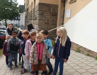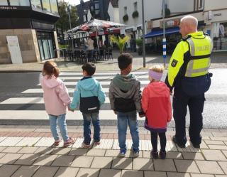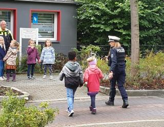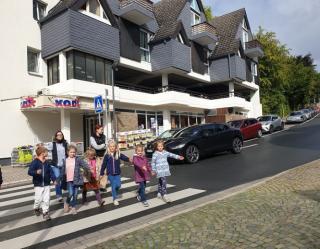 Im September haben wir einen aufregenden Tag erlebt, das Ehepaar Wernien kam uns in der Schule besuchen. Beide arbeiten bei der Polizei und sie wollten uns zeigen, worauf man im Straßenverkehr achten muss. In kleinen Gruppen sind wir gemeinsam durch die Innenstadt spaziert und haben gezeigt, welche Verkehrsregeln wir schon kennen. Wir haben Straßen sicher überquert und mögliche Gefahrenquellen auf unserem Schulweg gesucht. Viele Füchse kannten sich schon sehr gut aus und somit gab es ein großes Lob für uns! Liebe Erwachsene, fahrt bitte trotzdem vorsichtig in unserem Schulumfeld. Die Füchse und alle anderen RoBo-Kids sagen Danke!
