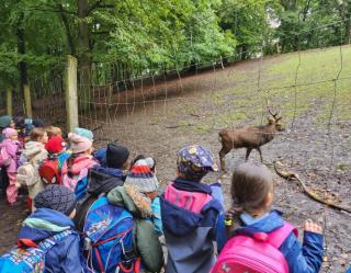 Wir haben Rotwild gesehen, die Wildschweine mit Äpfeln gefüttert und im Streichelzoo die Ziegen gestreichelt. Es gab auch eine Herbstrallye, die wir schlauen Füchse ganz schnell in unserer Gruppe gelöst haben. So blieb uns viel Zeit zum Kastanien sammeln und zum Spielen auf dem Spielplatz.