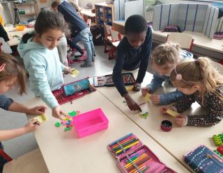 Wir können schon prima bis 10 rechnen, jetzt wird es Zeit die anderen Zahlen bis 20 kennen zu lernen. In unserem Klassenraum gibt es viel Material, das wir gemeinsam zählen. Wir probieren verschiedene Strategien aus, einige Kinder sortieren und bündeln, andere stapeln und wieder andere zählen die Menge ab. Später stellen wir uns unsere Ideen vor und überlegen, wie wir die Menge auf einen Blick erfassen können, wir nennen das unseren "Blitzblick".